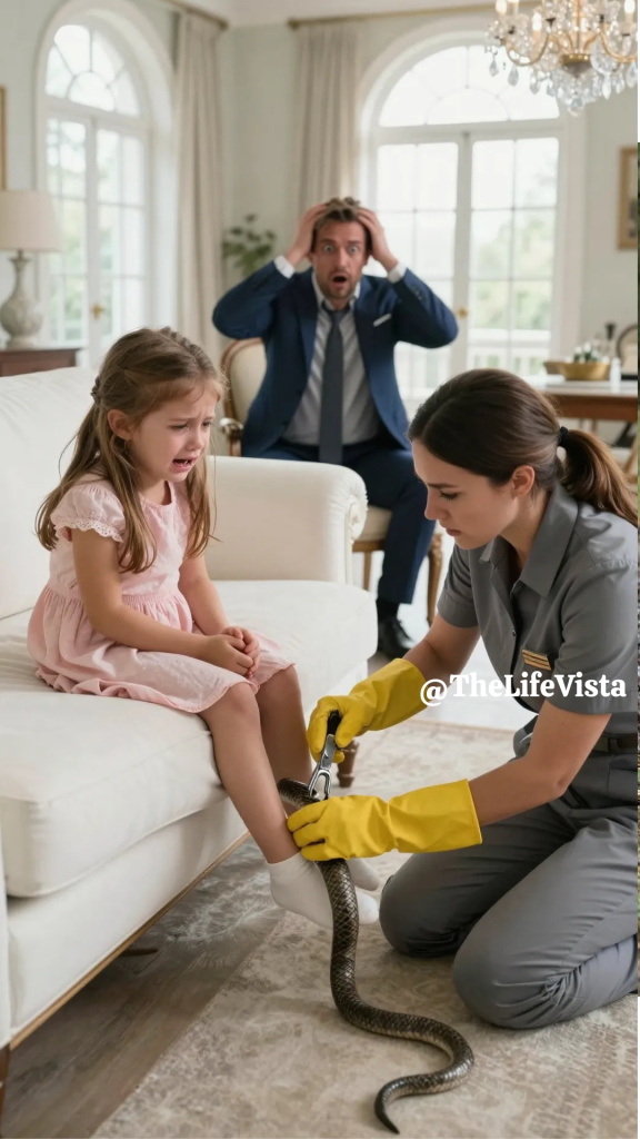 The girl didn’t answer. Instead, she lifted one small hand and touched her throat, fingers pressing lightly as her eyes filled with something that wasn’t pain but urgency, as if the words were trapped behind something she didn’t dare move.