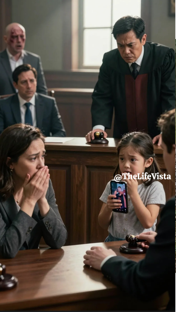 Lauren’s eyes flew open. Mia, who had been sitting quietly beside the court-appointed guardian, was now standing. In her small hands, she clutched a battered black smartphone, its screen scratched and its case chipped at the corners, an old device Lauren had believed was lost months ago. A murmur rippled through the courtroom as all eyes turned toward the child. Gregory shifted in his seat, his confident posture faltering for the first time.