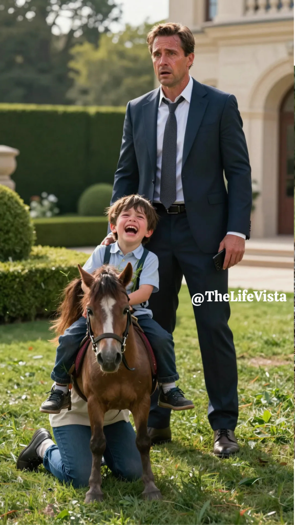 The child clutched Amelia’s shoulders, bouncing wildly, his face split open with laughter so loud and pure it echoed off the hedges. It wasn’t a polite giggle. It wasn’t restrained. It was unfiltered joy.