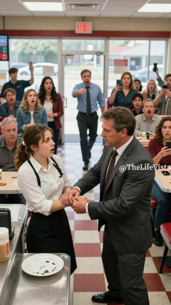 The manager rushed out from behind the counter, her voice sharp as she told him to release me immediately or she would call the police. Phones appeared in people’s hands, not to record food or friends but to document what was happening. A woman near the window stood and said, “Let her go.” Someone else repeated it from another table.