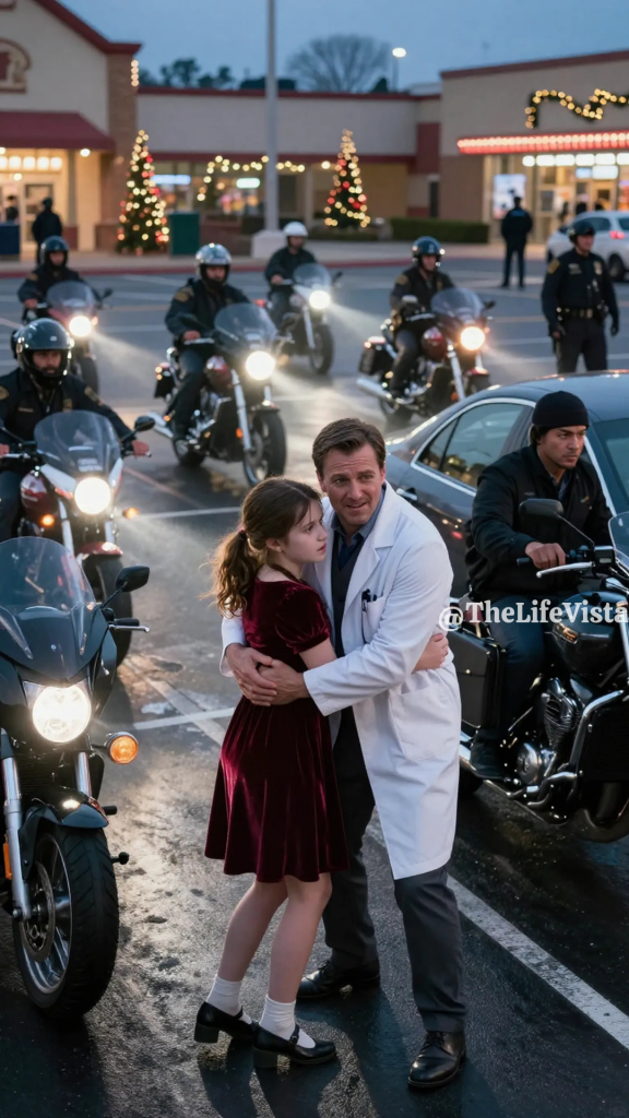 Ronan kept his face soft and merry, because Santa’s job was to feel safe, but inside him a different man stood up—the one who’d survived war, the one who’d learned how predators move, the one who understood that panic is loud and planning is quiet. He lowered his voice until it was meant for her alone, and he asked, “What’s your name, sweetheart, and who brought you here today?” The girl swallowed before she answered, as if her throat didn’t want to cooperate with the truth. “I’m Poppy Rae Lawson,” she said. “That’s my dad, Dr. Grant Lawson. He’s a kids’ doctor. Everyone likes him.”