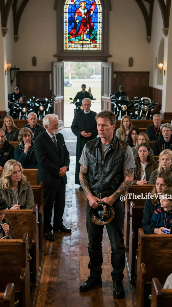A Silent Biker Stood at the Back of a Small-Town Church One Sunday Morning and Was Asked to Leave Because of His Leather Vest and Tattooed Skin—Unaware That His Presence Was Bound to the Church’s Most Unspoken History