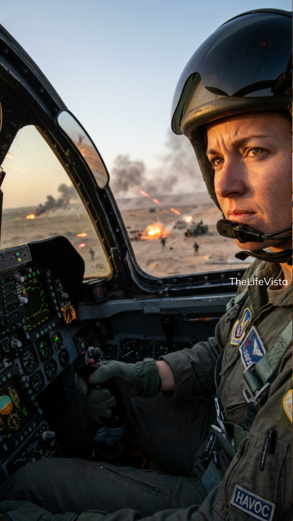 Captain Sofia Reyes, piloting her A-10 Warthog high above the battlefield, tightened her grip on the controls as her eyes swept across the unforgiving terrain below. Flashes of gunfire lit up the ground like scattered sparks, smoke curled into the sky, and far beneath her, Marines were pinned down in a brutal ambush. Her pulse surged—but years of training forced her into focus, into control.