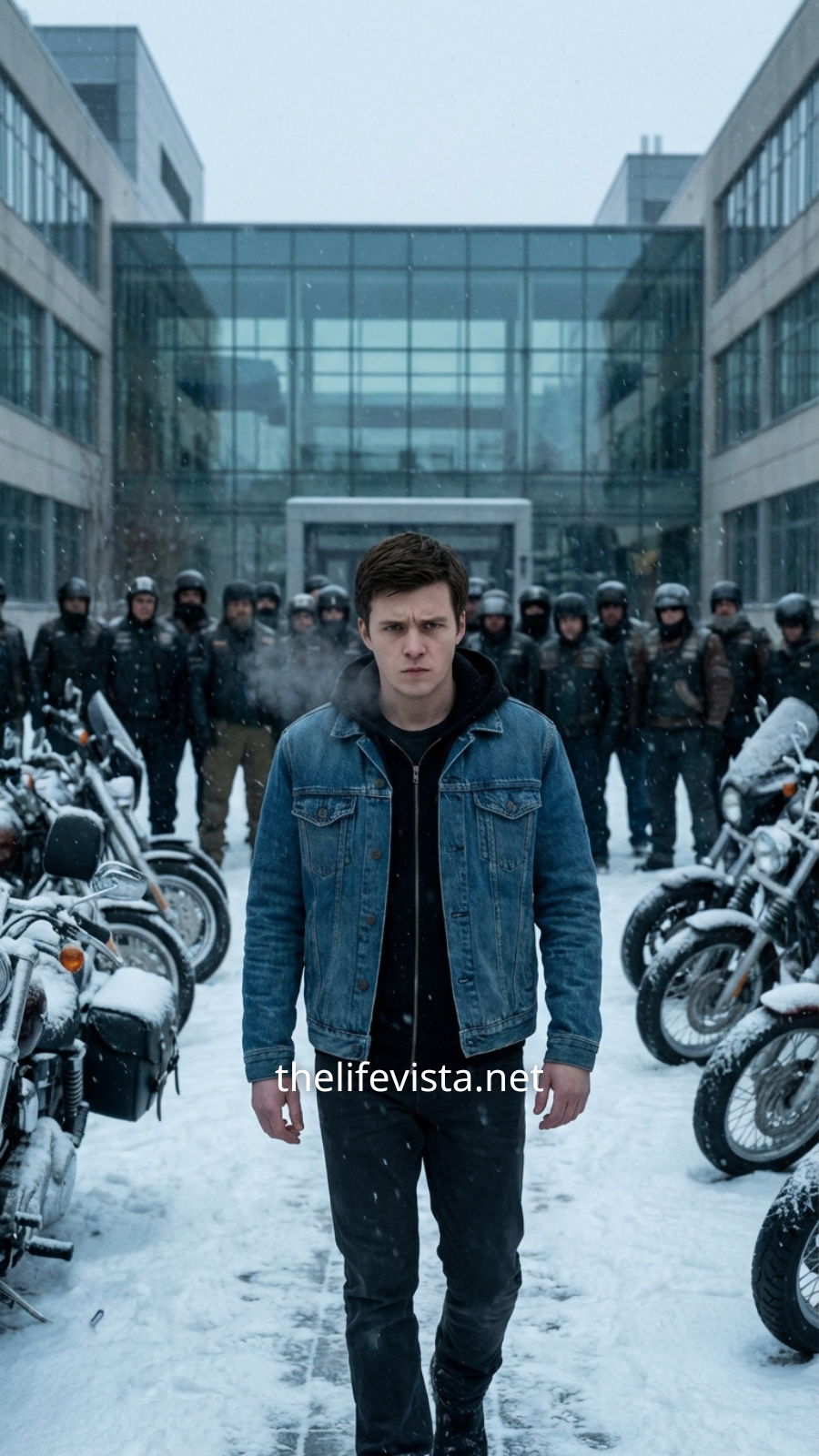 Ethan’s legs wouldn’t move. He stood frozen at the edge of the parking lot, staring at the sea of motorcycles and leatherclad people. His heart pounded so hard he could feel it in his throat. Students were pressed against windows all over campus watching. Teachers stood in doorways. Everyone had stopped what they were doing to watch what was happening.