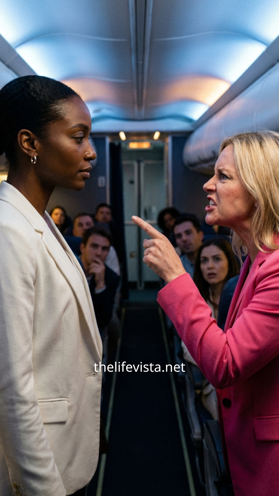 A white woman in her mid-fifties reclined in the seat with an air of effortless entitlement, as though first class had always belonged to her and always would. Her blonde hair was perfectly styled, her designer scarf sat elegantly around her neck, and her expression radiated a blend of irritation and ownership. She surveyed the cabin not as a passenger, but as someone who believed she had a claim over the space.