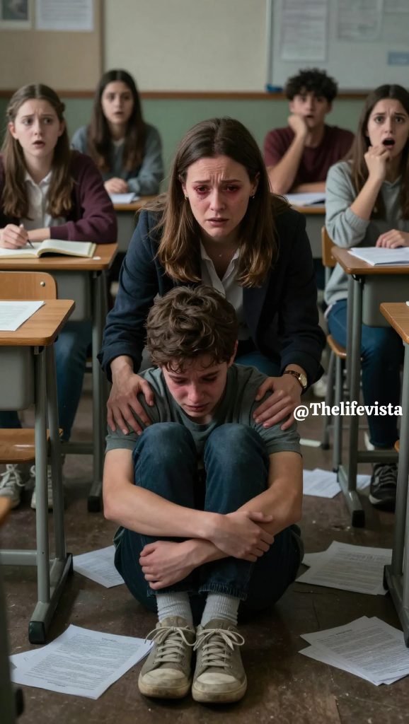 She grabbed his shoulders with both hands, and her fingers dug into his shirt. Her whole body was shaking as she stared down at him. Everyone in the class froze completely. Nobody moved or even breathed. Philip’s eyes were huge and wet with tears as he looked up at her face. Her mouth opened and closed like she wanted to say something, but couldn’t find the words.
