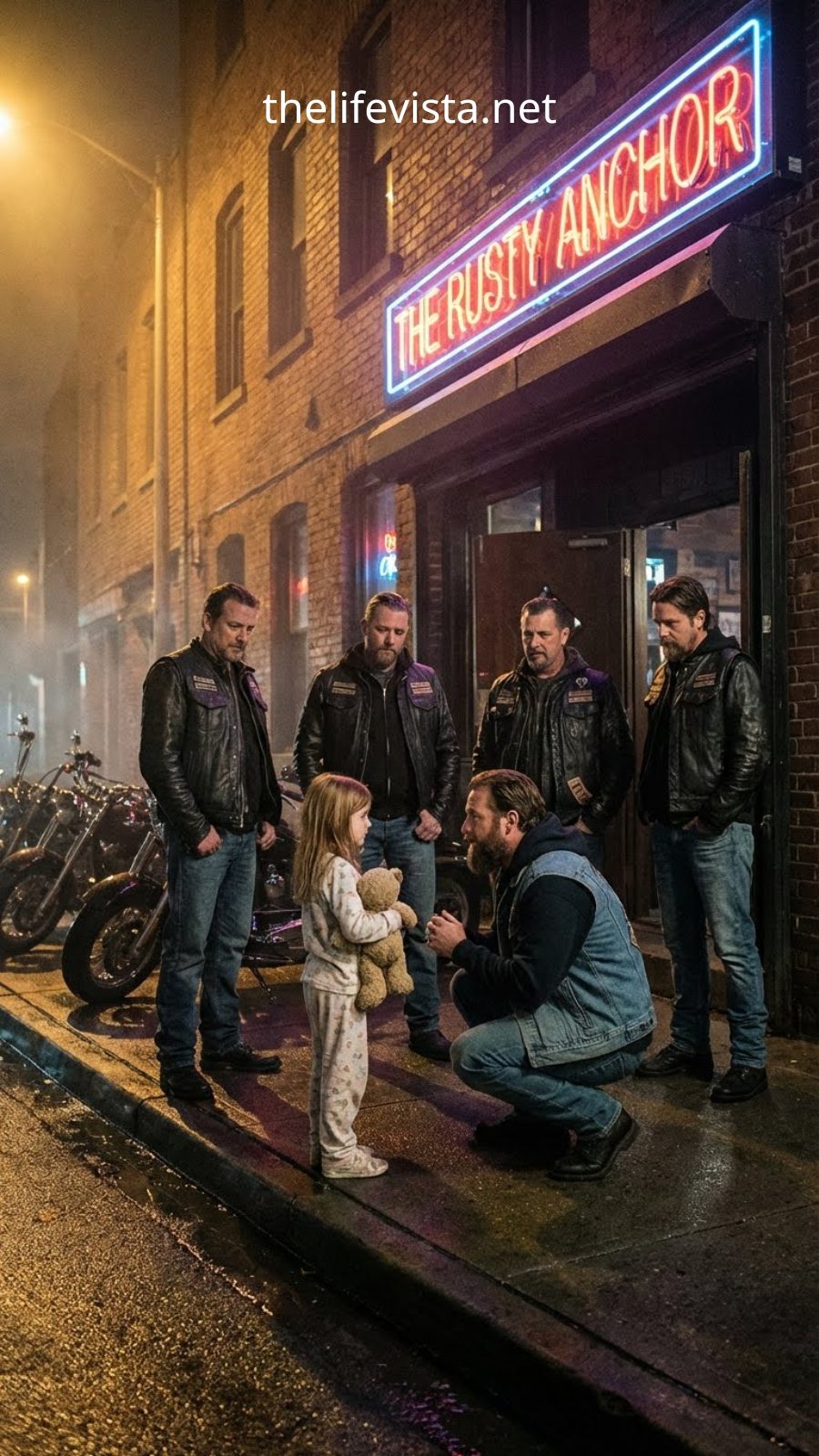 Which is why the room turned utterly silent when the front door swung open and that tiny girl stood there, framed in the glow of a flickering neon sign.