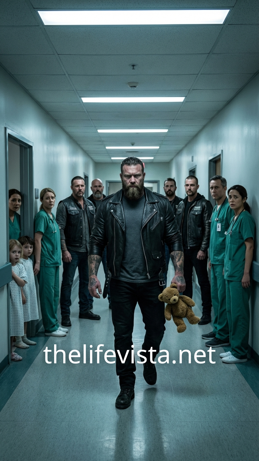 The next afternoon, the hospital felt unnaturally still. Then, at exactly 2 PM, a low vibration shook the windows. Nurses and parents rushed to the corridors, peering out. One by one, gleaming motorcycles filled the parking lot, chrome flashing like armored soldiers.