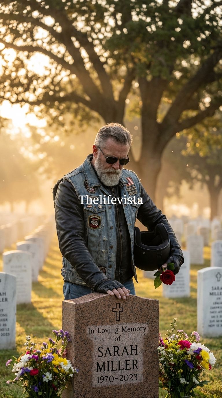 He’d park under the same oak tree, remove his helmet with a strange, careful reverence, and walk straight to my wife’s headstone.