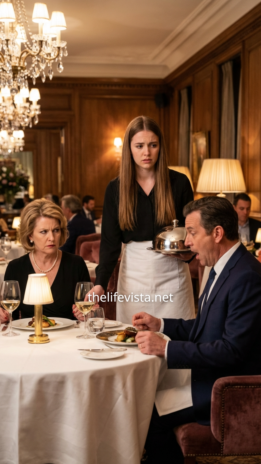 A young waitress approached their table carrying two carefully plated dishes. She couldn’t have been more than twenty years old. Her uniform was simple, but there was a quiet confidence in the way she moved. As she leaned forward to place Edward’s plate in front of him, he lifted his eyes casually—and suddenly froze.