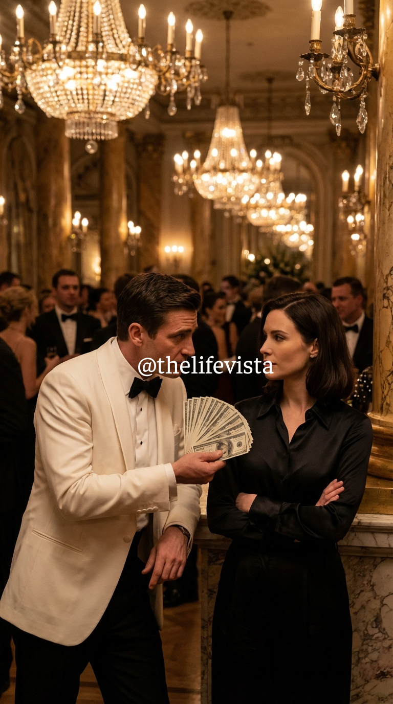 Cassandra giggled, but a few elderly patrons shifted uncomfortably. Vincent strode toward Anna, who had just set down an empty champagne tray. The bundle of $100 bills he flourished—a solid ten thousand dollars—was an insult disguised as an opportunity.