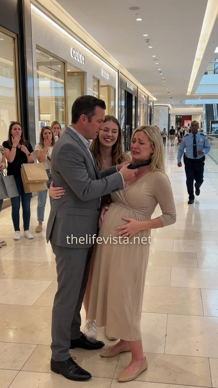 The soft weekend sunlight reflected off the towering glass walls of Brookhaven Plaza Mall, where Olivia Carter walked slowly through the wide marble corridors. One hand rested gently over her round belly as she moved carefully, feeling the weight of eight months of pregnancy with every step.