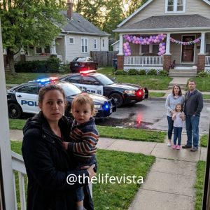Tyler appeared, eyes tired. Behind him—Ashley, still sleepy. Until she saw the officer.