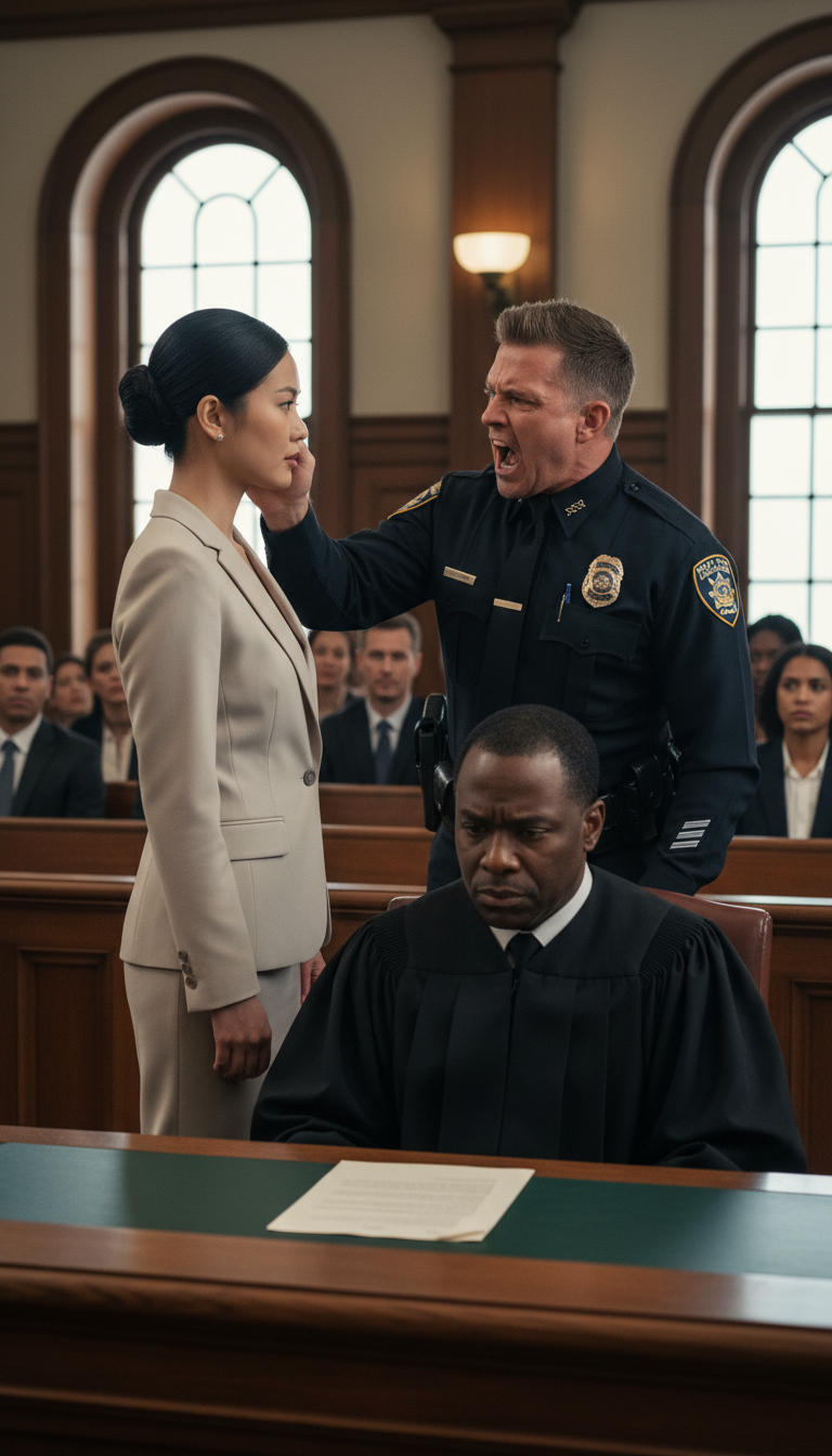 Before she could answer, Vale stepped in and backhanded her across the cheek—a fast, humiliating strike meant to silence, not to injure. The sound snapped the hallway quiet. A clerk froze mid-step. A junior barrister stared, mouth slightly open.