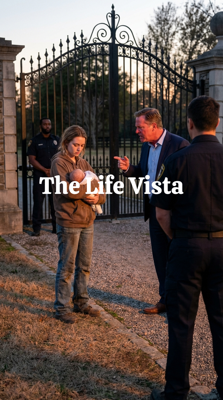 The girl stood just beyond the threshold of the property, half-hidden by the looming wrought iron, her shoes worn thin, her jacket too light for the season. She couldn’t have been more than nineteen. Dirt smudged her cheek, and exhaustion sat on her shoulders like a physical weight. Strapped securely against her back was an infant, wrapped in a faded blanket whose color had been washed out by too many cleanings and too many hard days.