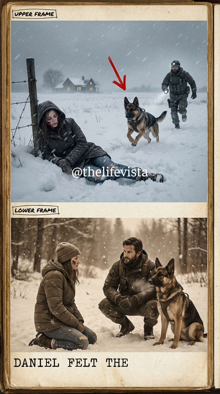A savage bark ripped through to the frozen night. Maverick charged into the blizzard, deaf to every command. Ryan knew instantly this wasn’t pursuit. It was panic. He followed, flashlight carving through the white out until the beam caught a body collapsed in the snow. A young woman, too still. The light slid lower and revealed a dark red stain steaming against the ice.