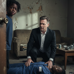 The storm did not arrive gently or with warning, but crashed down upon the city as though the sky itself had finally reached the limit of its patience, tearing open the night with blinding streaks of lightning and shaking the air with thunder so deep it felt ancient, while relentless rain scoured streets, rooftops, and alleys in a cold, merciless downpour that blurred the line between sky and earth. The city groaned beneath it, yet there was one place the rain could never cleanse, a place already steeped in rot and abandonment: the municipal landfill on the outskirts of town, where mountains of refuse rose like grotesque monuments to everything society discarded and forgot. There, amid split trash bags, slick mud, and jagged shards of glass that glinted like broken fangs whenever lightning struck, a small figure moved carefully and quickly, each step deliberate, each breath shallow against the cold. Her name was Mira. She was barely eight years old, though hunger and hardship had given her movements the weary precision of someone far older, and her hands, red and raw from cold and work, looked too large for her thin arms. She wore a sagging charcoal jacket that swallowed her frame and soaked up rain until it hung heavy on her shoulders, along with mismatched boots, one of them crudely held together by a wrap of dull silver tape that peeled at the edges. She shivered constantly, soaked through to the skin, yet she never stopped moving because hunger did not allow pauses, and pain was something she had learned to walk through long ago. Mira searched the landfill for the usual scraps that might keep her alive: crushed cans, tangled copper wire, bits of metal or plastic that could be traded for a few coins. As she worked, she whispered encouragement to herself, telling herself she only needed one more find, one more small stroke of luck, clinging to the idea of morning because morning meant the open market, and the market meant coins, and coins meant the possibility of something warm to eat. She had not eaten in more than a day, and although her stomach twisted painfully, her thoughts were already fixed on survival beyond the night. She had just turned toward the narrow alley where her shelter waited, a reinforced cardboard box tucked behind broken pallets and shielded from view, when the air itself seemed to shift, and a sound reached her ears that did not belong in that place. It was not thunder or the groan of a truck, but the low, smooth hum of an expensive engine, a sound so wrong in that wasteland that her entire body went rigid. The landfill had its own unspoken rules, and one of them was that no one came there after dark for innocent reasons. Fear surged through her, sharp and immediate, and she darted behind a pile of old tires, curling herself tight and barely breathing as beams of white light sliced through the rain. A sleek black luxury car rolled into view, impossibly clean against the filth around it, like something from another world, and when the headlights went dark, the silence that followed felt heavier than the storm itself. A door opened, and a woman stepped out, her long coat plastered to her body, dark hair soaked and clinging to her face. She did not move with confidence or ease but with frantic urgency, glancing around as though the shadows themselves might expose her. In her arms she carried a bundle wrapped tightly in cloth, pressed against her chest as if it burned her skin. Mira felt a chill that had nothing to do with rain or cold as she watched, frozen, her heart pounding in her ears. The woman paused beside a gap between heaps of industrial waste, hesitated, whispered something that the wind stole away, and then, with a sudden, violent motion, released the bundle as though she could not bear to hold it any longer. It dropped among the black garbage bags with a dull thud, and the woman hurriedly covered it with smaller bags, dragged a soggy piece of cardboard over the top, and ran back to the car without looking back. The engine roared, mud sprayed, and the vehicle vanished into the night, leaving only rain and the echo of what had just happened. Mira stayed hidden for long seconds, counting her heartbeats, torn between terror and curiosity, wondering what could be so terrible that someone would discard it in the dead of night. The thought of money or something valuable flickered through her mind, because value meant food and warmth, and necessity eventually overpowered fear. She crept forward, hands shaking, tearing away bags and lifting the cardboard, revealing beneath it a wool blanket that was far too fine for a place like that, even soaked through with rain. When she touched the bundle beneath, warmth startled her, and movement followed, and as she pulled the blanket back, a sharp, desperate cry pierced the storm. Mira collapsed to her knees in the mud, staring in disbelief at the tiny, trembling body of a baby, its face flushed red from cold and distress. Shock held her frozen for only a heartbeat before instinct took control, and she gathered the infant against her, whispering broken questions into the rain, unable to understand how anyone could throw away a living child like refuse. Without thinking of herself, she stripped off her jacket and wrapped it around the baby, pressing the small body to her chest to share the last of her warmth, murmuring reassurances she barely believed but desperately needed the child to hear. As the crying softened, her fingers brushed against something cold beneath the blanket, and when lightning flared, she saw a thick silver chain with a rectangular tag engraved with a single name: BLACKWELL. That name carried weight she recognized even in her world of scarcity, the name of towers and businesses and people who paid others to remove children like her from their sight. Her mind reeled as she looked again at the infant’s unblemished face, healthy and innocent, and she made a quiet promise aloud that whoever this child bel