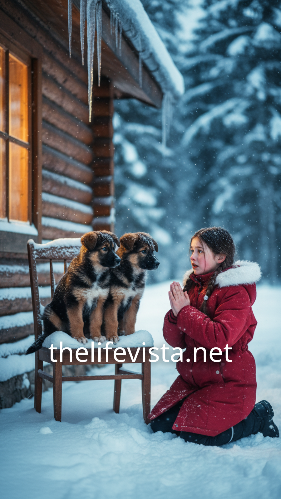 On the coldest night of winter, when most families were safe inside warm homes, a little girl in a bright red coat stumbled upon two tiny German Shepherd puppies shivering in the snow, abandoned, freezing, and moments away from death. She didn’t hesitate. She didn’t think twice. She scooped them into her arms, whispering, I’ll protect you. I promise.