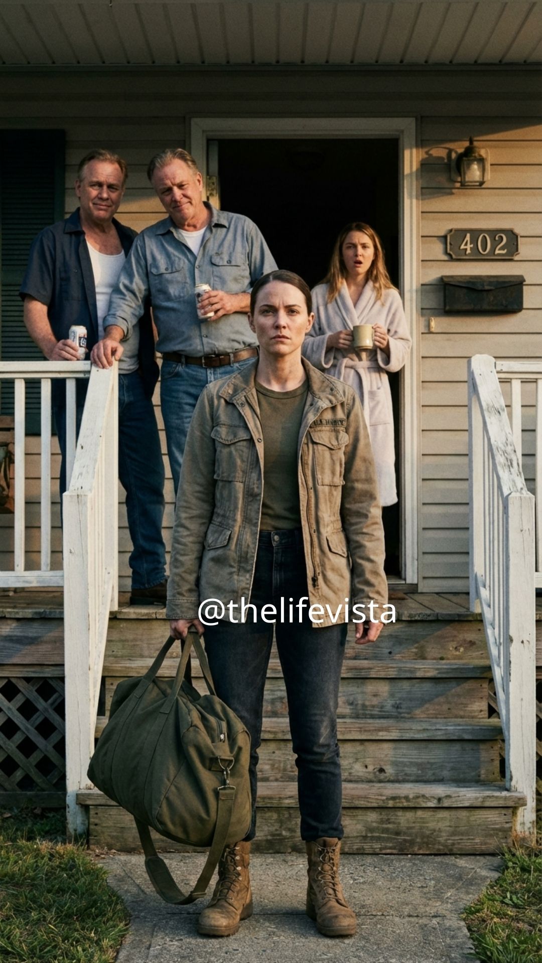 The taxi pulled away, leaving a cloud of dust in its wake, and there I stood with my seabag slung over one shoulder and my boots still carrying traces of Okinawa’s red dirt. I hadn’t even made it three steps toward the front door when I saw them—my father and my older brother Tyler, standing on my porch like they owned the place. The smirks on their faces told me something was very wrong, the kind of wrong you can feel before a single word is spoken.