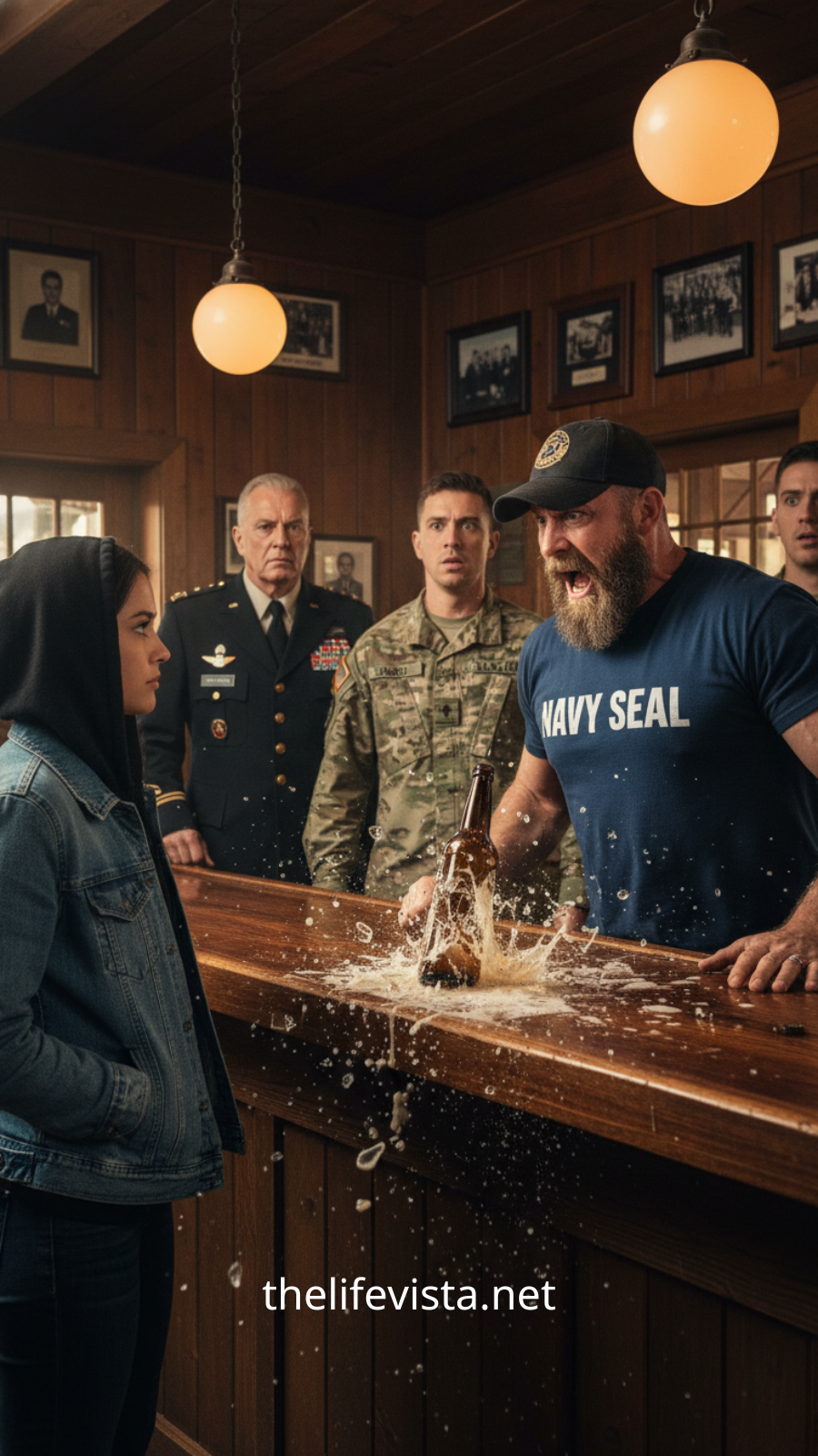 At a corner table, six Navy SEALs laughed too loudly, celebrated too hard, and competed in the silent game soldiers always play: who’s toughest, who’s seen the most, who can take the most pain. One of them, Chief Petty Officer Daniel Cruz, had the bad habit of mistaking volume for respect. He’d had just enough whiskey to amplify insecurity into arrogance, just enough bitterness to search for someone to push down so he could feel taller.