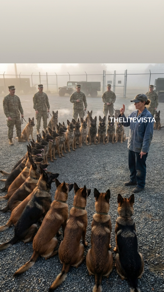 Forty-seven dogs—Belgian Malinois and German Shepherds, all trained for combat, detection, and controlled aggression—reacted at the exact same moment.