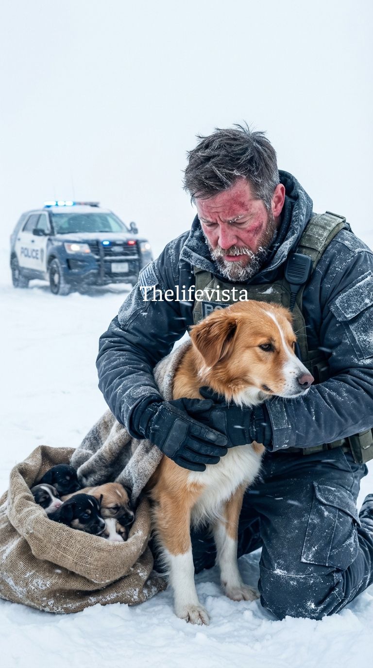 A patrolman found a mother dog and her puppies tied up in a blizzard, but what he truly discovered was a miracle of survival, a testament to courage, and a reminder of the deep bonds that connect all living beings.