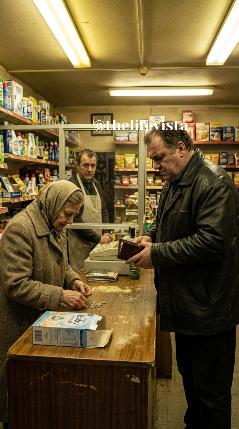 The grocery store line slowed to a crawl when the cashier began counting the coins one by one. They were the last coins a poor mother had. All for baby formula. Her hands trembled. Her baby cried softly. People behind her side annoyed. Some looked away. Others whispered. Behind the counter aisle, a man stood watching.