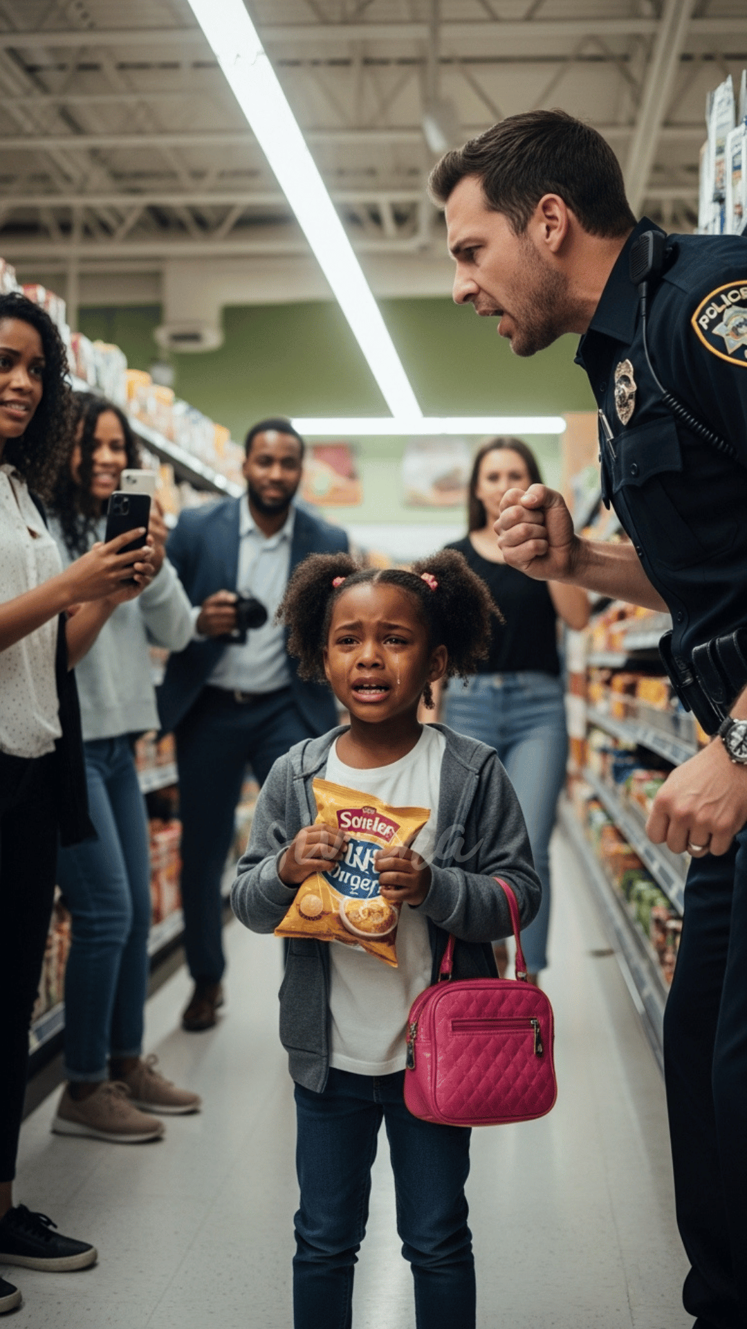 A woman called out, “That little girl didn’t steal anything! I saw it!”