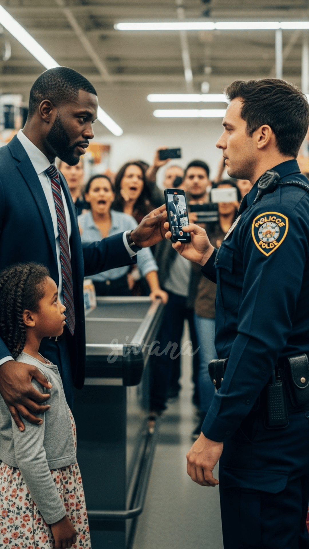 At the front of the store, he spotted his daughter in tears, her babysitter trembling beside her, and a uniformed officer standing nearby.