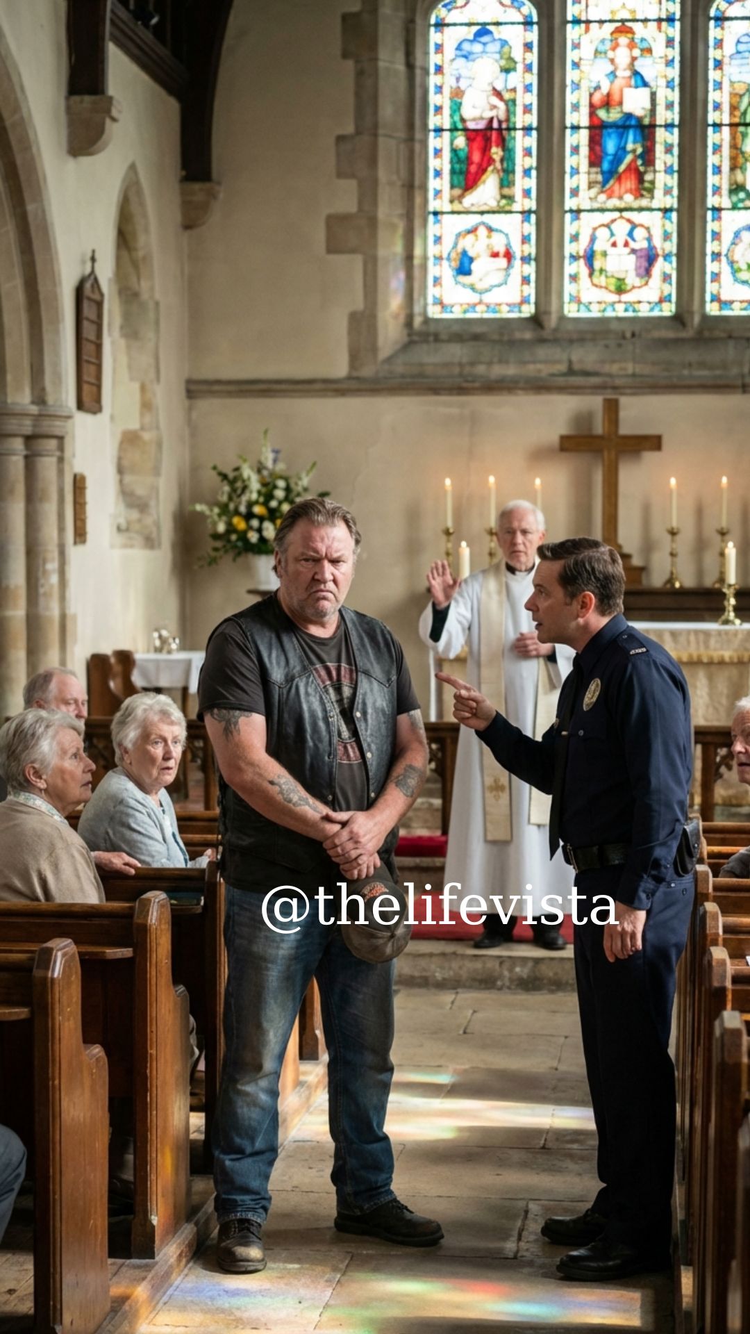 The priest broke off mid-sentence, the words he had spoken countless times about grace and humility hanging unfinished as his attention fixed on the movement near the back, on the sight of an usher guiding a man toward the door while the congregation held its breath.