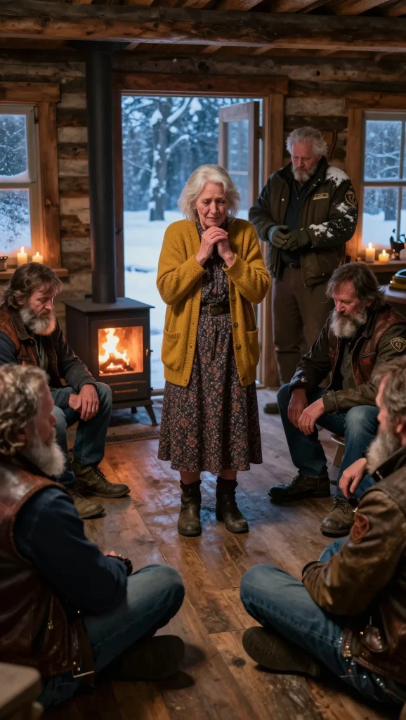 The house filled with new smells—leather, engine oil, frozen air—yet something else sat underneath it that Mabel hadn’t expected. It was restraint, a carefulness in the way they moved around her furniture, as if they understood they were guests in a place built from someone else’s life. Mabel opened a cedar chest and pulled out blankets she hadn’t used in years, thick wool that still smelled faintly of cedar and summers long past. She handed them out one by one, making sure each rider had something to wrap around shoulders and knees. When she reached the young man who had stumbled, she paused and looked at his face. His lips were pale from cold, and his eyes had that far-off look people got when they were trying not to shake.
