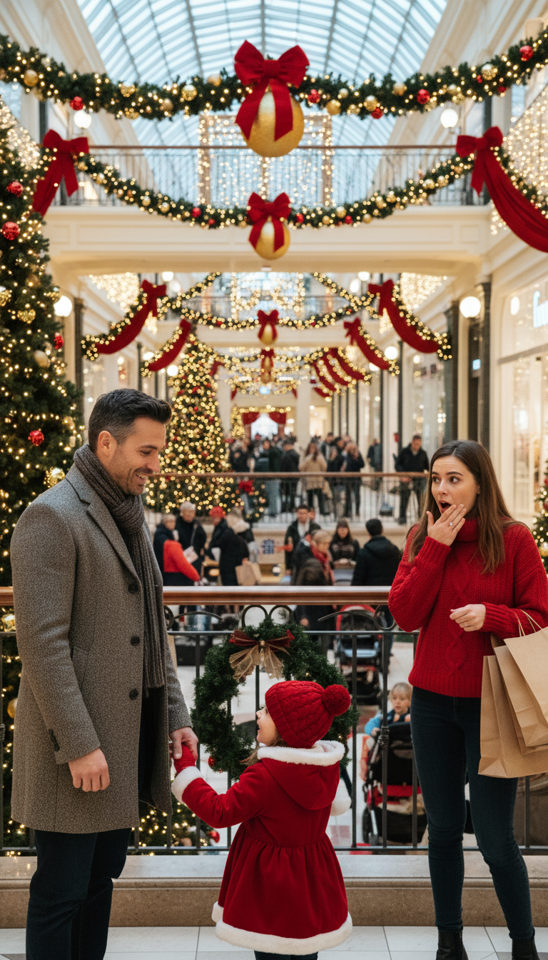 Two small words from a five-year-old cut through the static of carols, chatter, and the squeak of winter boots. Aaron’s hand tightened around his daughter’s mitten. In the glittering crush of the Christmas Eve crowd, the world tunneled down to a single figure by the pretzel stand—a woman with snow-wet hair, one hand over her mouth, tears glimmering in the bright mall lights.