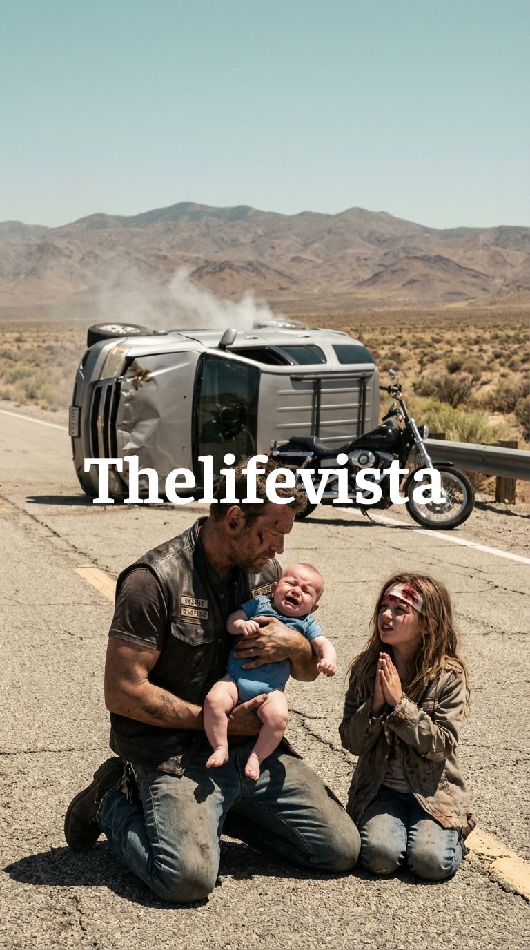 The first thing that split the morning open wasn’t the crash, it wasn’t the scream, it wasn’t even the smell of hot rubber and scorched metal drifting across the Nevada highway like a warning no one had bothered to read, it was the sound of a child begging a God she probably wasn’t sure existed, her voice cracking into the dry desert air with the kind of desperation that makes grown men do things they didn’t plan on doing that day, and that was the moment Jackson “Ridge” Stone slammed both brakes so hard his custom Road King bucked sideways and nearly threw him clean into the gravel.