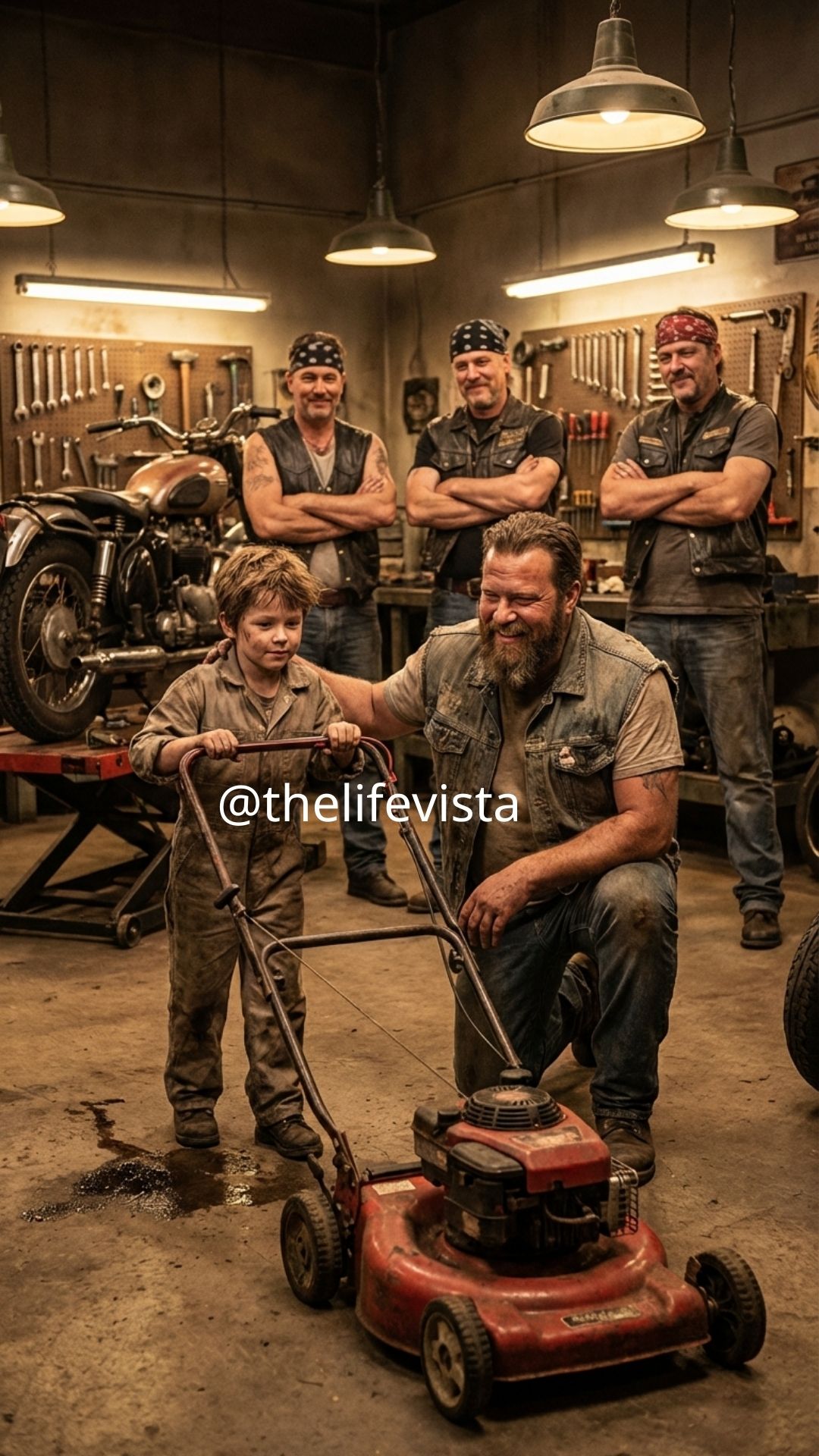 The mower was heavier than Eli expected. Dragging it down the sidewalk felt like hauling a stubborn animal that refused to cooperate, and the rusty wheels clattered loudly against the pavement, drawing curious glances from passing drivers and porch sitters. A few teenagers on bikes laughed as they rode by, the sound trailing behind them longer than necessary, but Eli kept pulling because embarrassment is lighter than hopelessness once you have carried both. By the time he reached the small house where he lived with his foster family on the edge of town, his arms ached and his hands were sore enough that even loosening his grip took effort.