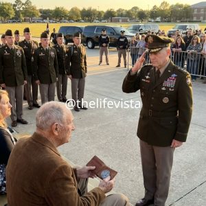 She marched toward him, her black shoes clicking a sharp, rhythmic cadence that sounded like a drumroll. When she was three feet away, she stopped. Her back went ramrod straight. Her arm snapped up in a salute so precise it seemed to cut the air.