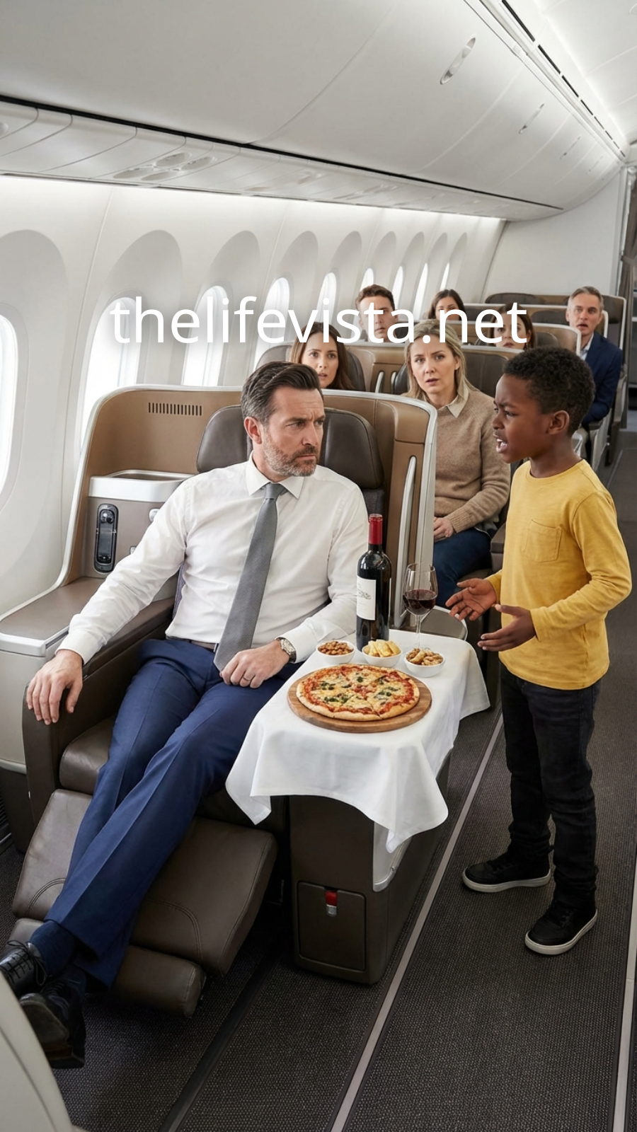 As passengers slowly boarded the aircraft, the cabin buzzed with the usual mixture of conversation, rolling suitcases, and the quiet hum of anticipation that always accompanied the start of a long flight. Among the travelers making their way down the aisle was a young black boy named Jordan Mitchell. Though only twelve years old, he carried himself with calm confidence as he scanned the overhead seat numbers, searching for his assigned place in the first-class section.