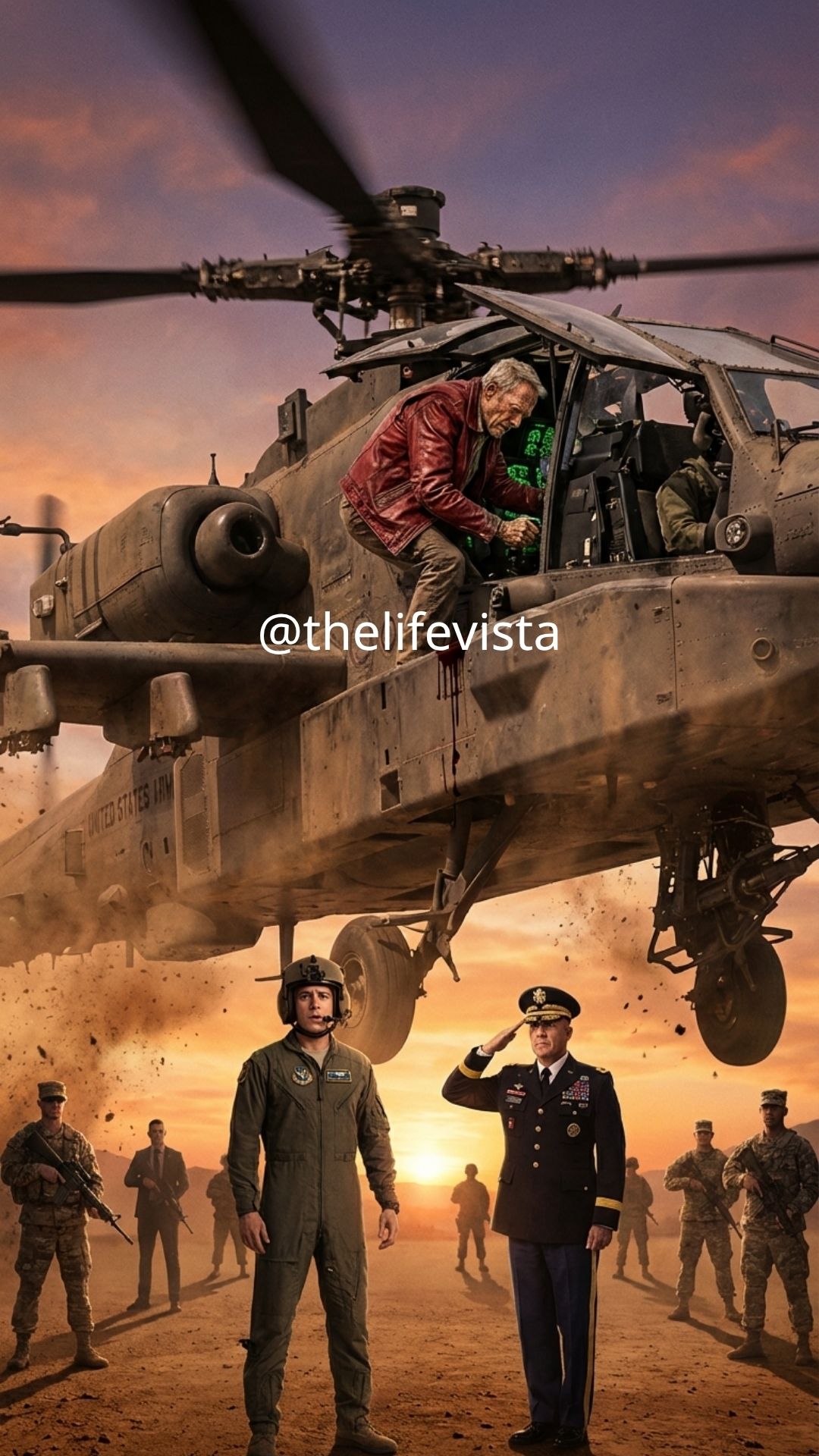 The man in the faded red leather jacket didn’t move. He stood motionless with his hands clasped behind a back curved like weathered oak. Walter Hayes was seventy-two years old, and to Cole, he appeared as nothing more than a spill of gray paint across a pristine military canvas. Walter stared at the helicopter’s sensor array — the “eyes” of the Apache — with a terrifyingly vacant yet intensely focused gaze. The desert wind whipped the few remaining strands of his silver hair, but his sunken, pale eyes never blinked against the blowing grit and sand.