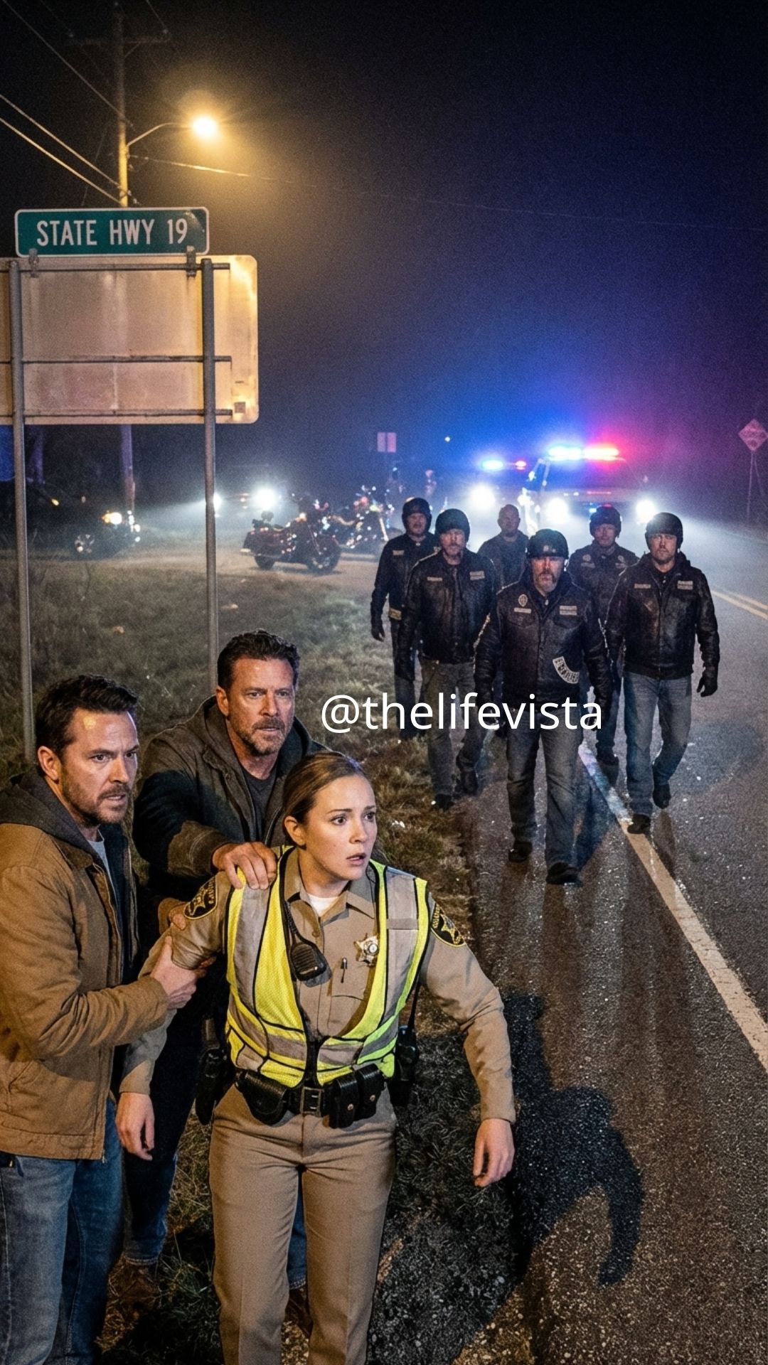 Further down the highway, the familiar rumble of six motorcycles blended into the horizon, not as an omen but as a reminder that courage does not always announce itself loudly. Sometimes it arrives in measured footsteps, in steady voices that refuse to yield to intimidation, in strangers who decide that someone else’s safety is worth the inconvenience.