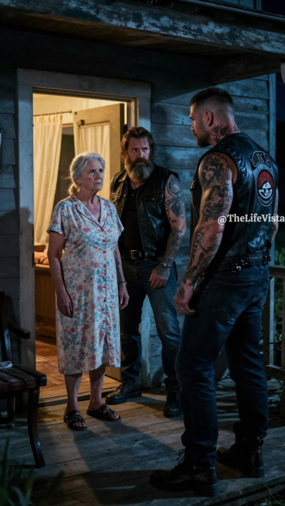 Even in the dim porch light, Maggie could see the gang tattoos on his neck. “Cole,” Jack said, his voice flat. “What are you doing here?” Cole’s lips curled into a cruel smile. “What? No warm welcome for an old friend.” His gaze shifted past Jax to where Maggie sat. “Nice setup you got here. Playing house with grandma.