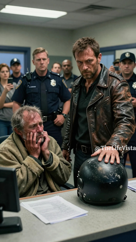 Grant stopped directly between Walter and the officer, placing himself squarely in the space where authority had just been abused. He set his helmet down on the desk with a solid thud that echoed through the room, then lifted his eyes to meet the officer’s glare without flinching. When he spoke, his voice was calm but carried an unmistakable finality, telling the officer that it was over and that no more harm would be done. The officer scoffed and ordered him to step back, insisting that the situation did not concern him, but Grant replied evenly that it did the moment someone was hurt without cause.