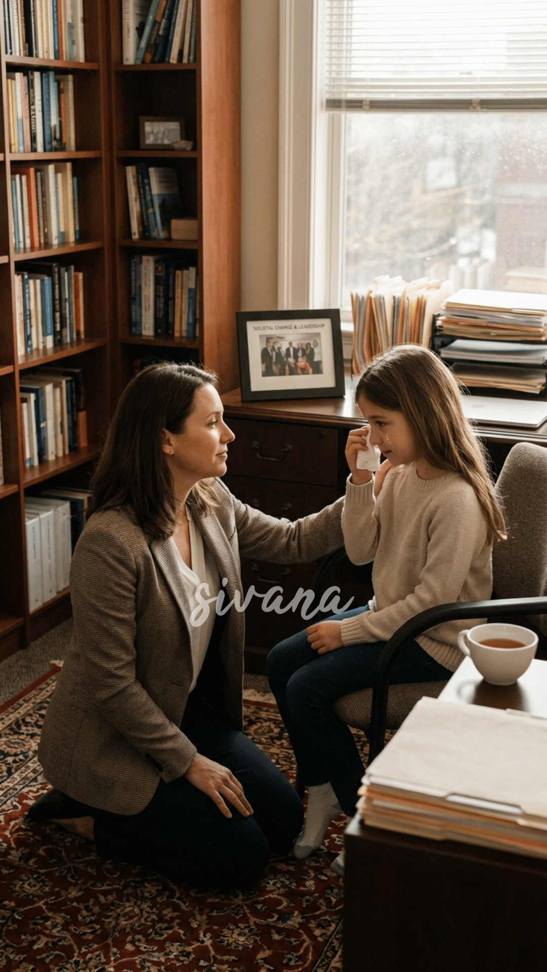 When we reached my office, I closed the door behind us and guided her to the couch. She sank into it, shoulders loosening for the first time since I’d arrived. I knelt in front of her.
