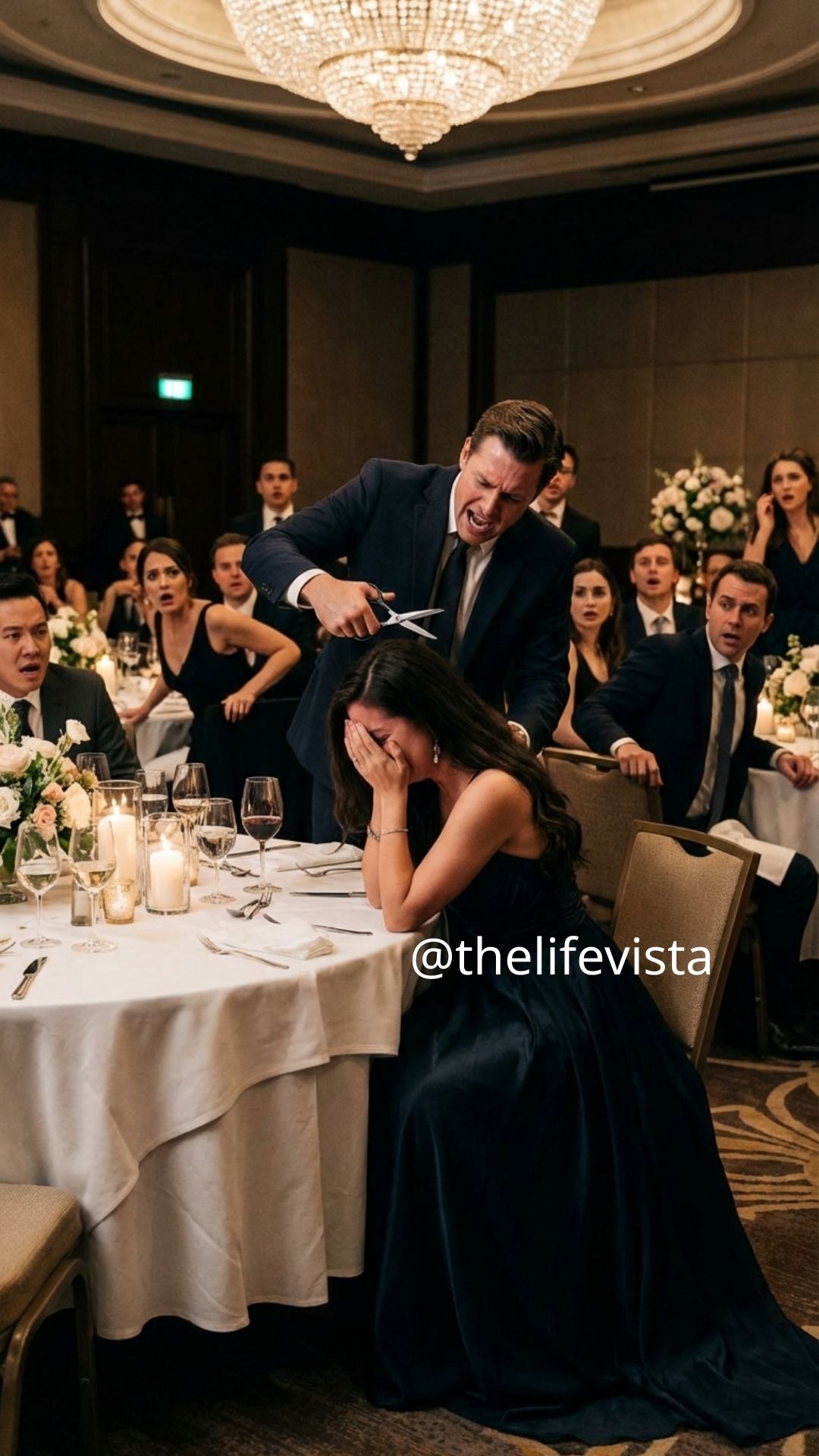 A waiter came to refill glasses and the conversation grew louder, and for a brief moment I hoped the tension might pass. Instead, Lucas leaned close behind me like he was about to whisper something affectionate, and I heard the faint metallic sound before my mind could register what it meant. A second later something yanked at my head, and I gasped as a heavy chunk of my hair slid down onto my shoulder. My brain refused to understand what I was seeing until I felt another sharp tug and heard a cold, brutal snip that made the room fall silent.