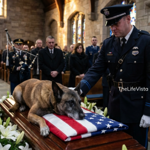 The flag was folded. The white-gloved hands of the honor guard moved with a grace that felt like a dance, the fabric tucked into a tight, blue triangle. Foster took the flag, his movements slow and reverent. He didn’t present it to Emily immediately. He turned to Jack first.