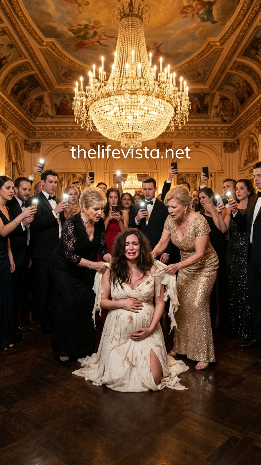 Suddenly I stood half-naked beneath the massive chandelier, surrounded by a crowd of people staring—many holding up phones, recording every humiliating second.