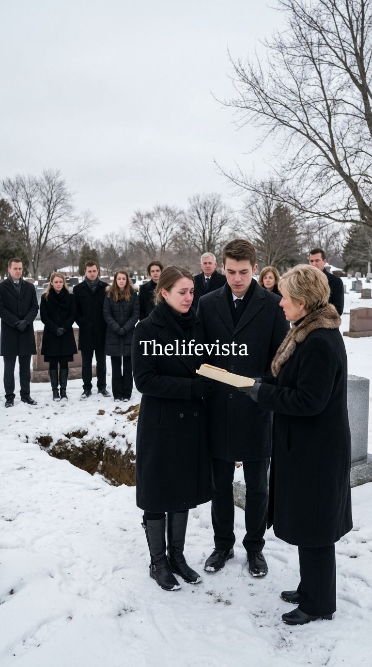 I was too numb to respond immediately, my thoughts moving sluggishly, as if wading through deep water, and in that haze I registered absurd details—the faint scent of Helena’s perfume, something floral and expensive, the way snowflakes collected on the sleeve of Ethan’s coat and melted into darker patches, the distant hum of traffic beyond the cemetery gates, life proceeding as though the world had not just cracked open.