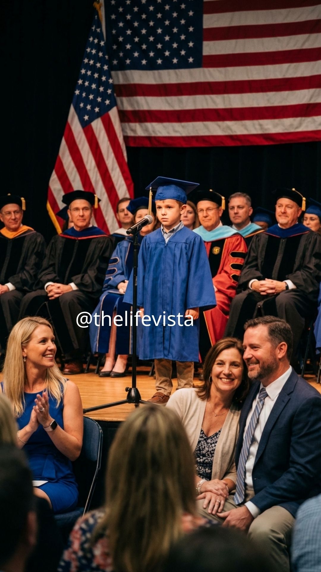 The entire room went still. For a moment, no one seemed to understand what was happening, because people don’t expect children to interrupt ceremonies, and they certainly don’t expect them to speak with the kind of calm authority that makes adults suddenly aware of their own ugliness. Eli’s voice wasn’t loud, but it carried through the auditorium with surprising clarity, and the awkward laughter that had hovered in the air evaporated instantly, replaced by a silence so sharp it felt like the entire room was holding its breath.