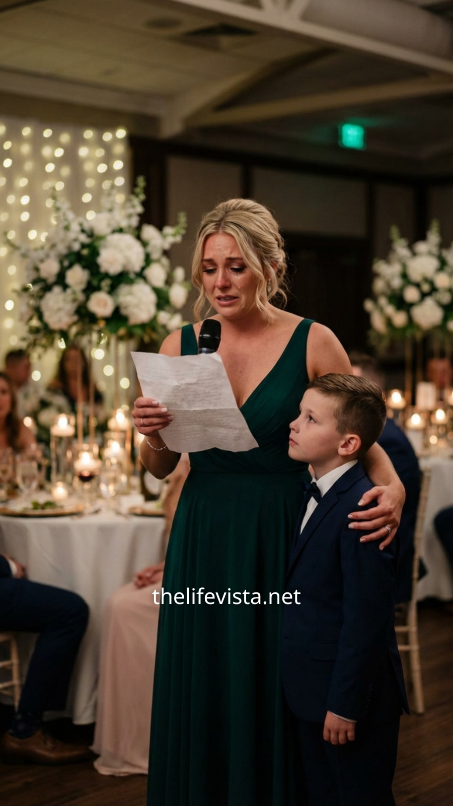 At my sister Madison’s wedding, I tried to make myself invisible, slipping behind a row of gleaming champagne flutes and the towering white cake as if I could dissolve into the wallpaper for just one evening—just long enough to avoid becoming the target of someone else’s cruelty. My son, Eli, sat beside me in a tiny navy suit, his legs swinging gently as he traced the delicate gold lettering on our place card, as though those looping letters might somehow protect him. I held onto a polite smile, the kind you wear when you refuse to ruin someone else’s celebration—especially when that person has spent years acting like your very existence is an inconvenience they never quite forgave.