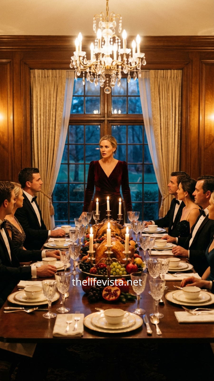 I was in the middle of carving the turkey when Lauren tapped her fork against her wineglass. The sharp clink cut through the room, silencing every conversation instantly. The air shifted, heavy with something rehearsed, something deliberate. I looked up slowly, the knife still in my hand, and saw her standing there, posture straight, eyes locked onto me like she had been waiting for this moment.