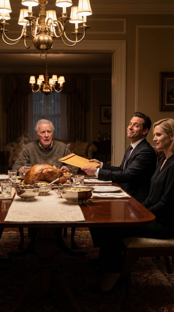 I had held his hand and told him I understood. But I did not understand. Not then. Not until this moment, sitting at my Thanksgiving table, with my son’s forged signature glowing on a tablet and his wife’s cold smile cutting across the candlelight.