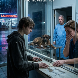 Rain hammered the sidewalk like it was trying to erase the city. Sixteen-year-old Mason Carter sat beneath a flickering neon sign outside a closed laundromat, shoulders hunched inside...